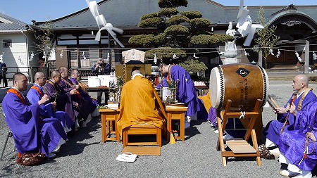 新築された供養塔の法要が執り行われました